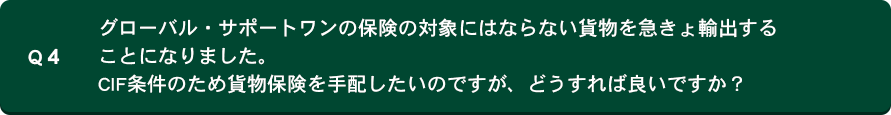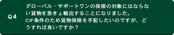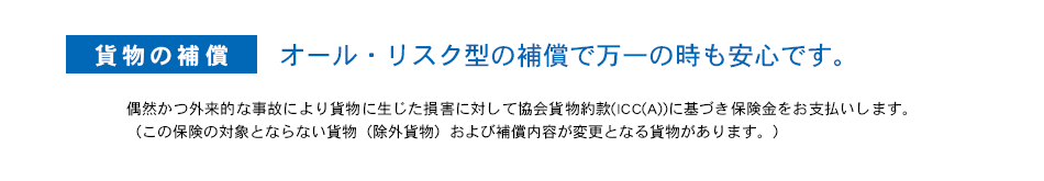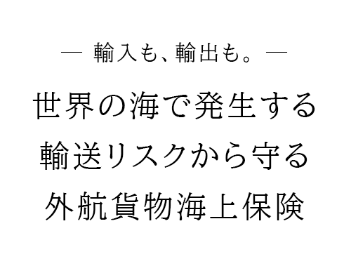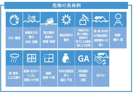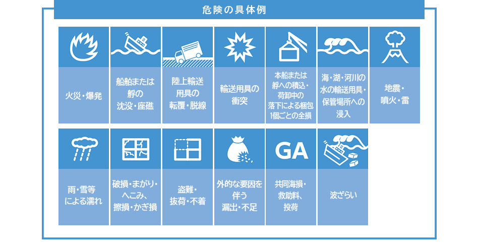 ※補償内容はグローバル・サポートワンの基本条件に従います。ただし、ICC(C)で補償される損害、Institute War Clauses(Cargo)またはInstitute Strikes Clauses (Cargo)で補償される損害、